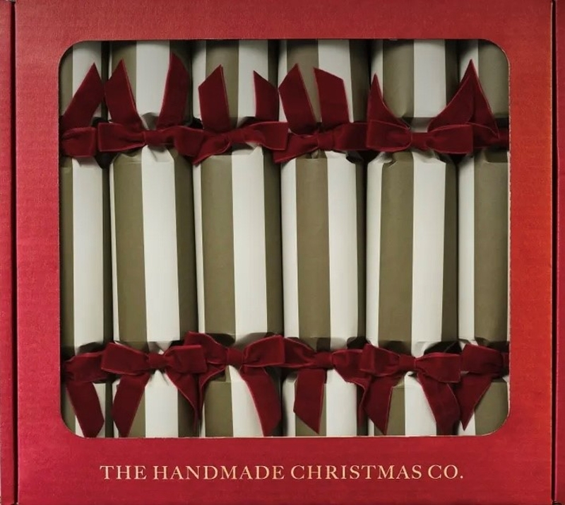 In an elegant soft and rich green and hand-finished with luxurious burgundy velvet ribbons, these luxurious crackers offer a sophisticated, neutral palette perfect for both traditional and contemporary table settings.
